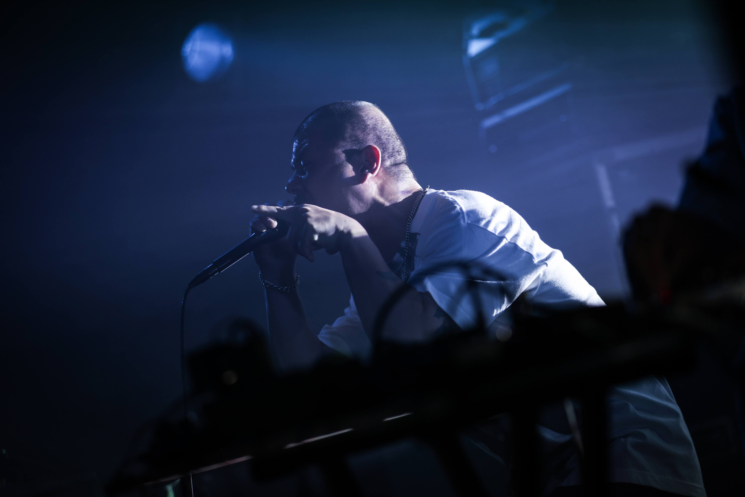 さて、「テーブル・コア」的な「ハーシュ・ノイズ」が観賞者の構想力を宙吊りにする瞬間を容易にはアレンジできなくなって久しい90年代、ラップトップが楽器として登場することでノイズ・ミュージックは革新的な展開を迎えます。代表例としては、Pitaを筆頭にしたMego的なセンスの登場です。ジム・オルークが彼らの活動を“Brand New Punk Computer Music”と評した通り、その革新性はまさにロックの手癖をオールドウェイヴと切り捨てるかの様にパンキッシュでした。より厳密にラップトップによるハーシュ・ノイズの名手と言いますとPitaの本人名義にあたるPeter Rehbergや、Zbigniew Karkowski、Russell Hazwell、一時期のMerzbowが挙げられます。デザインにおいても切れ味においてもロックのマンネリズムからの解放を感じさせるそのインパクトはまさに音響パンクでした。楽器としての歴史の蓄積が浅く、演奏の手さばきがブラック・ボックスとなるラップトップから暴力的な音を発するその姿は、70年代のオリジナル・パンクが我々に抱かせたような、「楽器を弾けない奴らがそこら辺にあったチューニングが合ってるかどうかなど関係ないエレキギターで無茶苦茶なコードをかき鳴らす」といった「幻想」を再燃させるには十分にパンキッシュでした。UCGMのdotphobもそういったPCによるハーシュ・ノイズの奏者というアイデンティティを全体的ではないにせよ系譜的に有していると思います。しかし、dotphobのパンキッシュな印象は70年代のオリジナル・パンクが我々に抱かせたそれとは随分と趣きの異なるものです。彼はライヴにおいてはアクションじみた身振りなど微塵も見せずに、マスクを着けたままPCの前に屹立し、何か陰惨で病的な作業に没頭しています。彼の音色が持つ「痛み」への固執――被虐的とも加虐的とも形容しがたい代物――は一体どこから来るのでしょうか。
