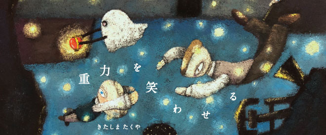 柴田元幸・小島敬太 編訳『中国・アメリカ 謎SF』の装画、文芸誌『MONKEY Vol.23』のカミラ・グルドーヴァ「アガタの機械」扉絵などでを手がけ、絵本『貝殻の底は積み木の影』(ondo)の著者としても知られるきたしま。同展では、“重力を笑わせる”という“不思議な装置”を巡る、ストーリー性を持ったイラスト作品を展示販売。同時販売の本『重力を笑わせる』は、高橋和也(SUNNY BOY BOOKS)が編集とデザインを担当しています。