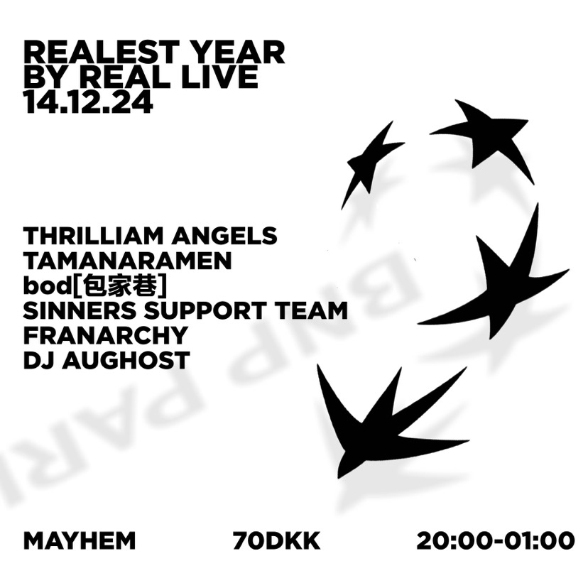 tamanaramenにとって初のコペンハーゲン公演となる「REALEST YEAR」は、同地の気鋭パーティ「REAL LIVE」の1周年を記念して開催されるもの。11月にスウェーデン・マルメ拠点のインディペンデント・ネットラジオ「Retreat Radio」にて放送されたプログラムに続いて「REAL LIVE」とのコラボレーションとなるtamanaramenに加え、bod [包家巷]、SINNERS SUPPORT TEAM、Thrilliam Angelsや、「REAL LIVE」のメンバー・DJ AUGHOST、Franarchyの出演が決定しています。