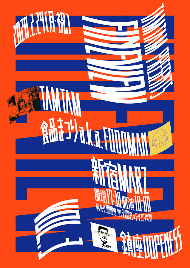 2018年1月から自主企画のライヴ・イベント「FINEVIEW」シリーズをスタートしたTAMTAMが、同イベントの最新回「FINEVIEW Vol.3」を2月24日(月・祝)に東京・新宿 MARZにて開催。すでに出演が発表されている食品まつり a.k.a foodmanに加え、新たに鎮座DOPENESSの出演が決定しています。