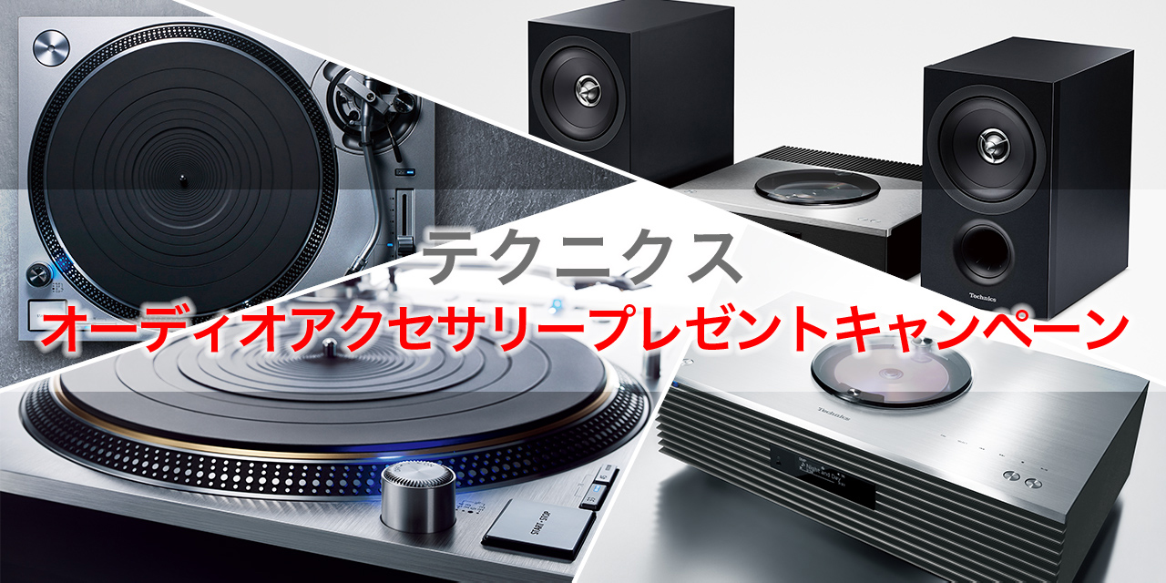 トップ・ターンテーブル・ブランドとしてのみならず、アンプリファイア、スピーカをはじめとする各種コンポネントやヘッドフォン / イヤフォンなども扱う音響機器ブランド「Technics」(パナソニック株式会社)が、同ブランド製品の購入者を対象にオーディオ・アクセサリーをプレゼントするキャンペーンを2月6日(月)より実施。
