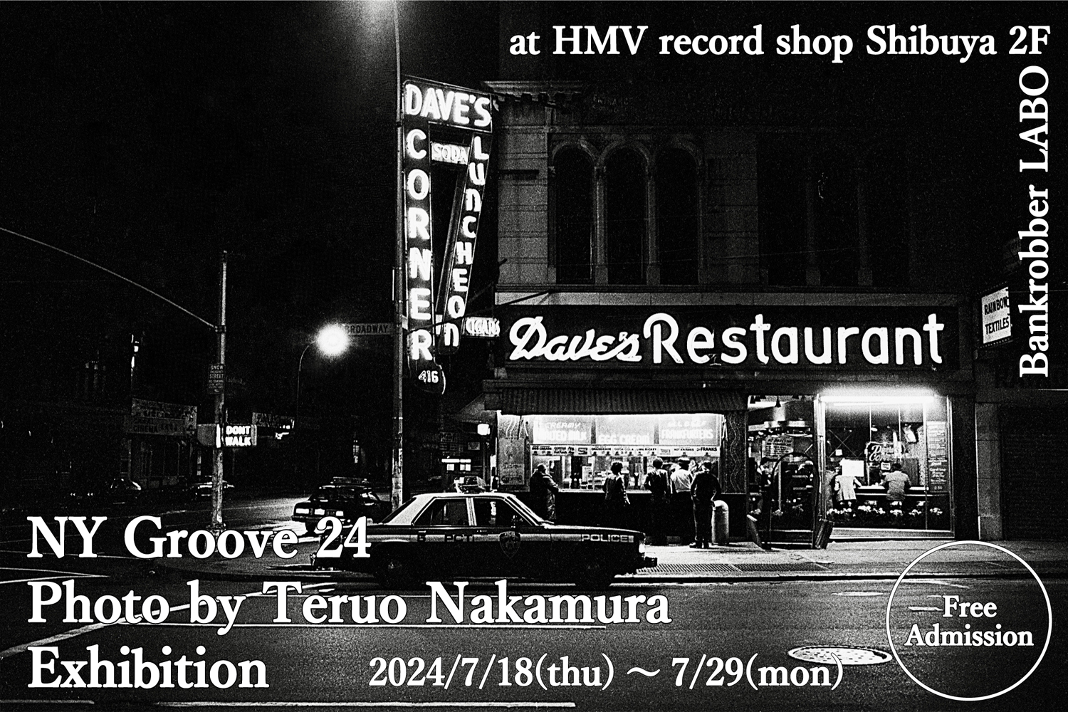 7月18日から28日までHMV record shop Shibuya, Bankrobber LABOで写真展を開催し、D.J.もやります。