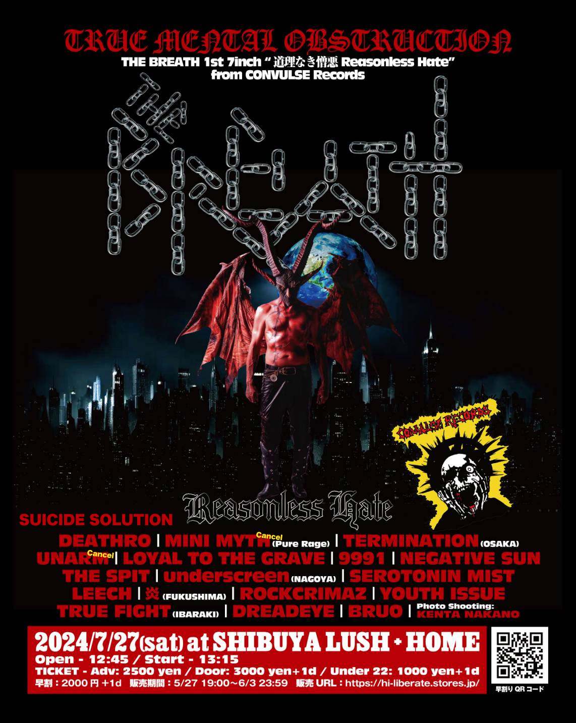 1st 7inch "道理なき憎悪 Reasonless Hate" from CONVULSE Records Release show