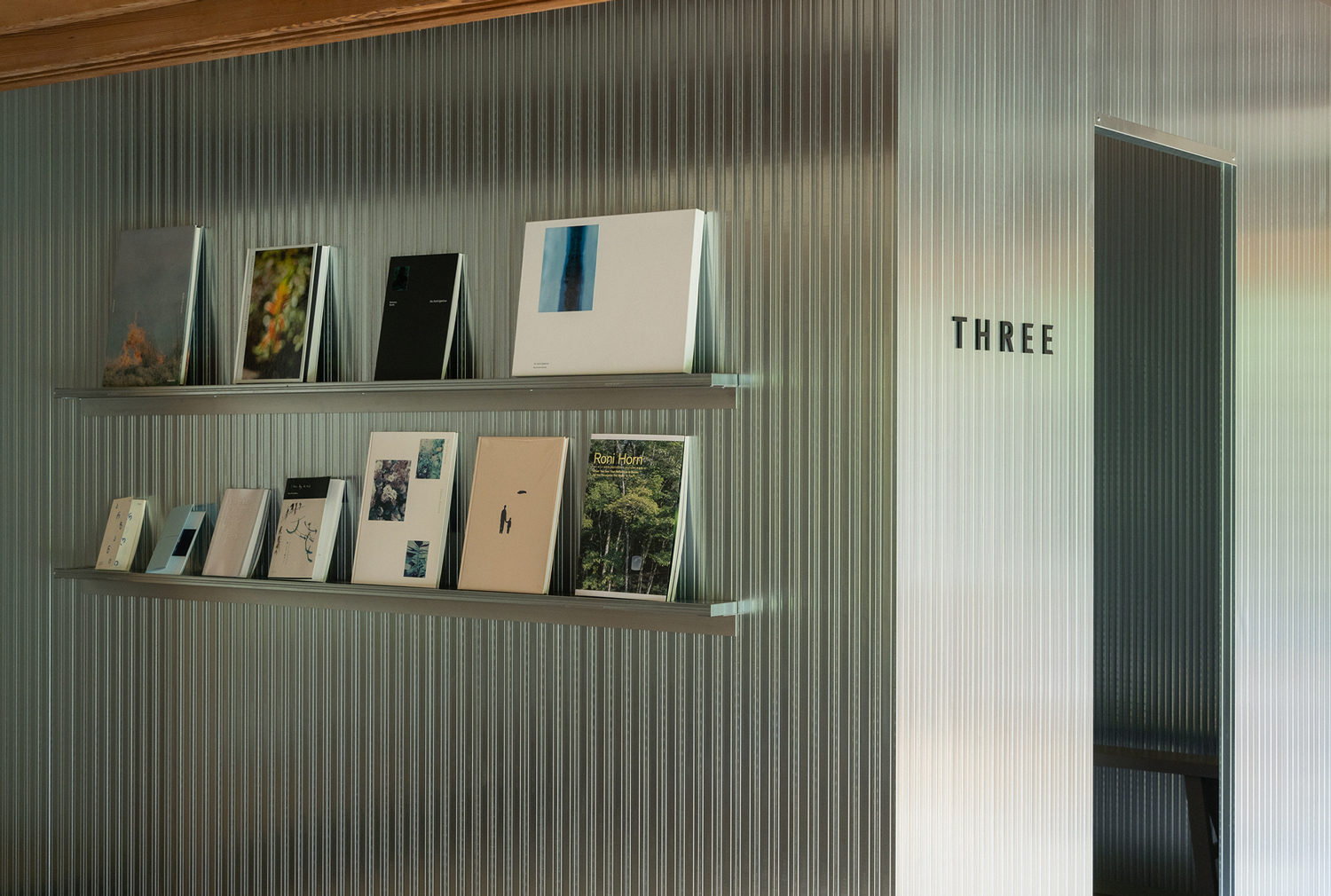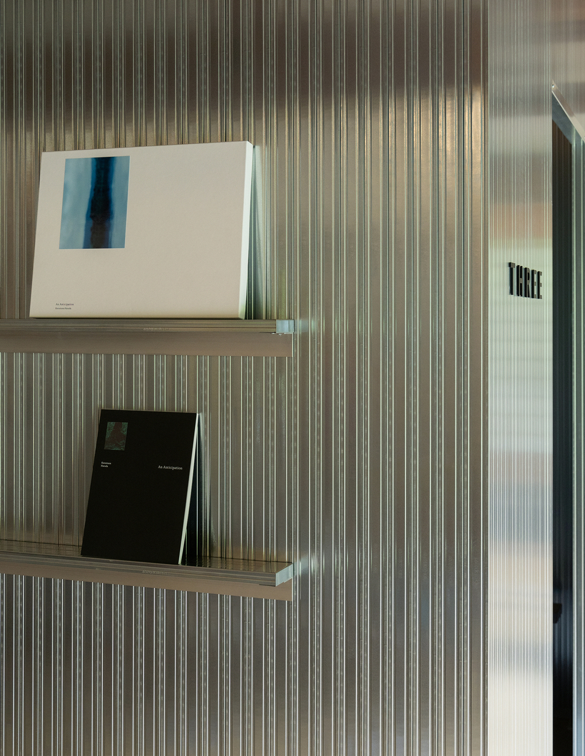 VISIONARIUM THREE SHIBUYAは「THE HEARING」と題し、ブックディレクター・有地和毅が新作フレグランス『05 AFTER THE RAIN』『06 TASTE THE AIR』の香りから着想を得て“雨”にまつわる小説、詩、エッセイをセレクトし、ひとつの物語のように構成。そのテキストを、詩人・菅原 敏が朗読した音声を香りの中で聴取する試み。CIBONEは、写真家・原田教正の作品集『An Anticipation』から、フレグランスのイメージに合う作品を未公開のものも含めて展示するエキシビション形式の「THE SIGHT」となっています。
