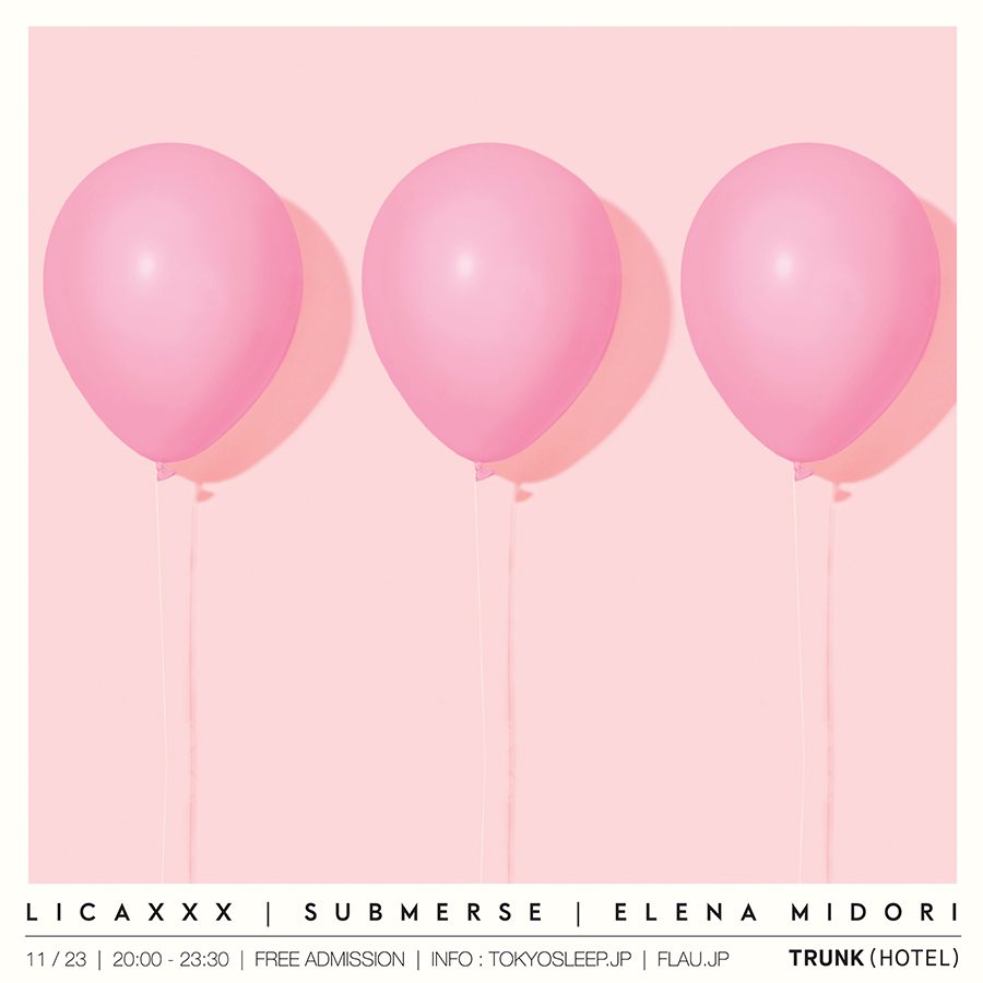 食品まつり a.k.a Foodman、Machìna、Elena Midori(dosing)を迎えて9月に開催された第3回に続く今回は、自身主宰の配信プラットフォーム「Tokyo Community Radio」を今年2月からスタートし、併せて大規模な全国ツアー「Licaxxx Japan Tour With TCR」を開催したLicaxxxと、9月に独「Project: Mooncircle」から最新作『See You Soon』を発表したばかりのsubmerseが登場。前回に引き続きElena Midoriの出演も決定しています。
