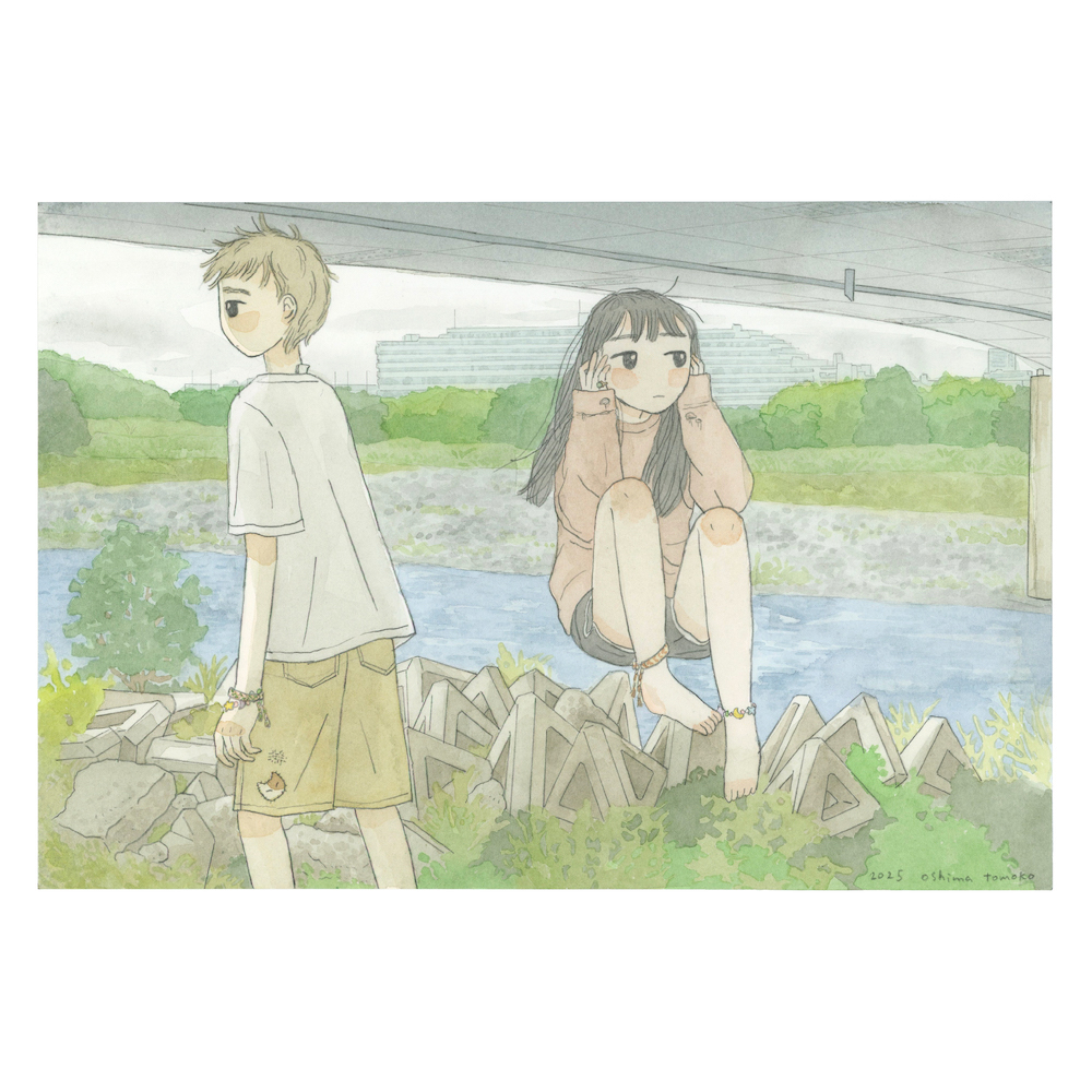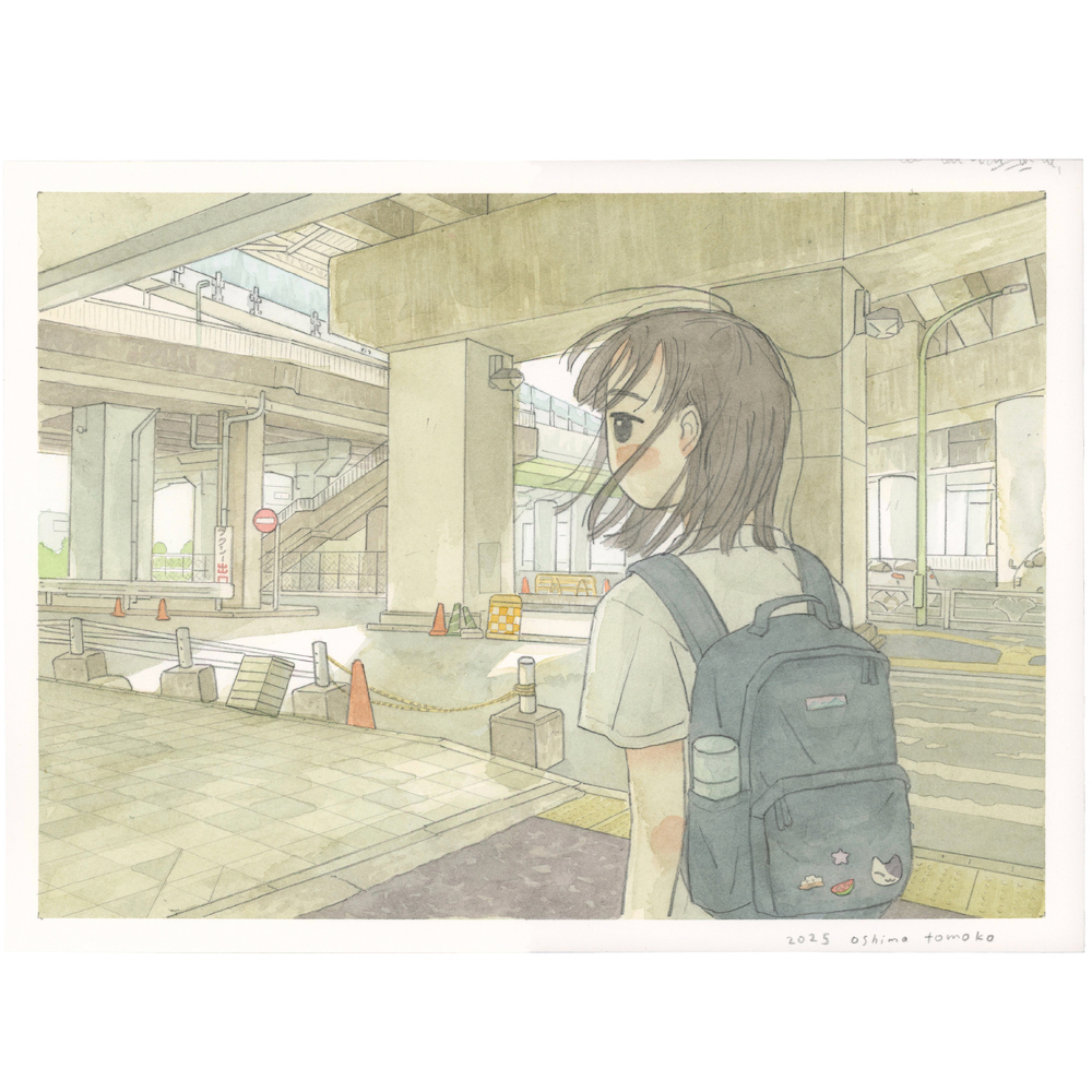 泉まくら諸作をはじめとする音楽作品のカヴァー・アートでも知られ、今年はDÉ DÉ MOUSEによる新プロジェクト“午後の気流”の1stシングル『偏西風の気まぐれ』や、コンピレーション・アルバム『Lonely Girl vol.8』のアートワークを手掛けている大島。大阪では初の個展となる「径庭」には、2024年から2025年にかけて自身が生活する東京・多摩エリアの景色を描いた水彩画を中心に出展されます。