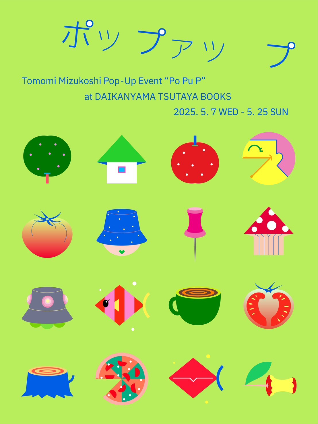 昨年9月にソロ・エキシビション「Matching Outfits」を東京・吉祥寺 にじ画廊にて開催したイラストレーター・水越智三が、ポップアップ・イベント「ポッ プァッ プ」を5月7日(水)から25日(日)まで東京・代官山 蔦屋書店 2号館 1階 建築・デザインフロアにて開催。ジン、プリント作品、表裏でモチーフが反転 / 変化するキーホルダーやTシャツなどのアイテムが展示販売されています。