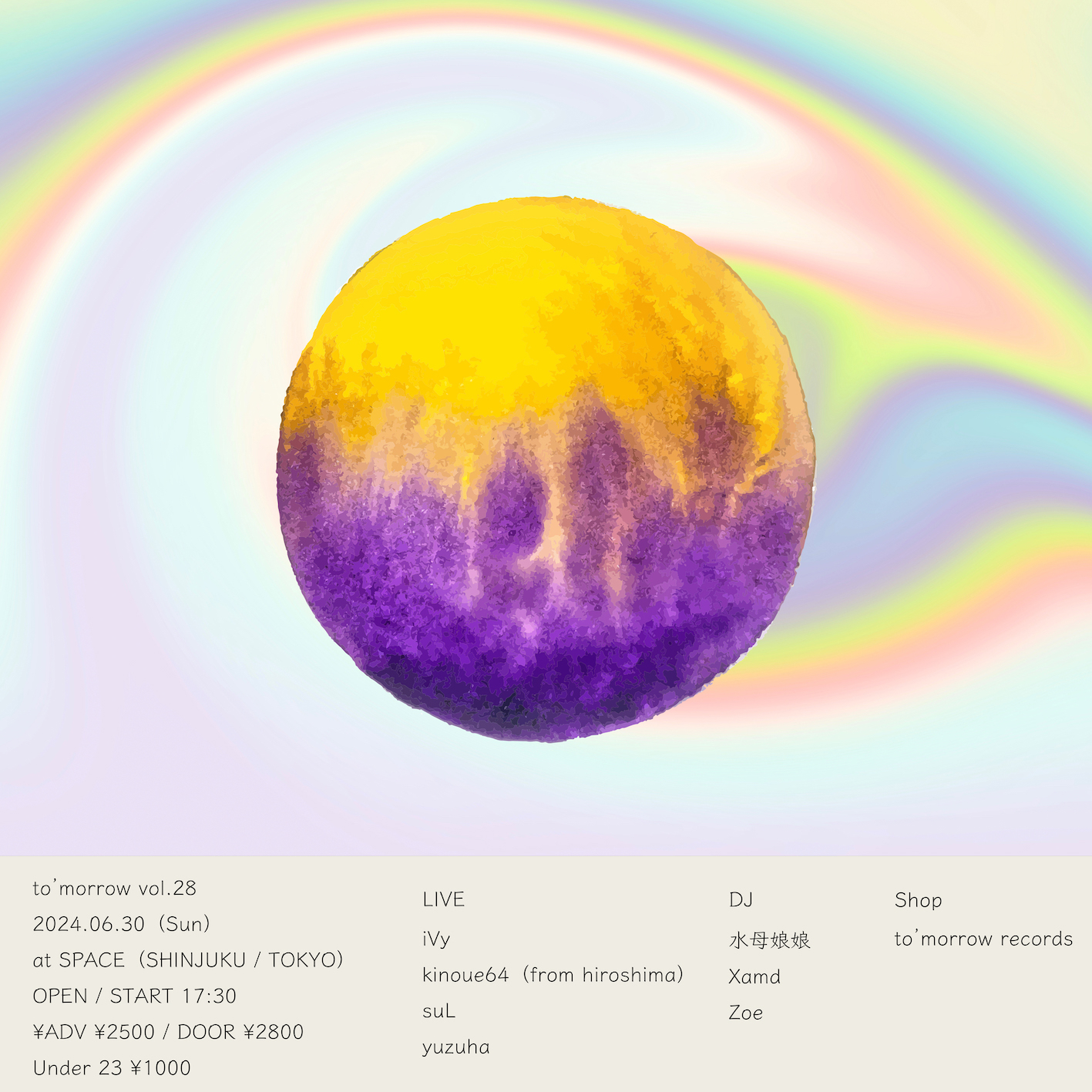 をテーマに開催される第28回では、iVy、suL、yuzuha、そして広島より来京するkinoue64がライヴ・パフォーマンス。DJとして水母娘娘、Xamd、Zoeの出演も決定しています。