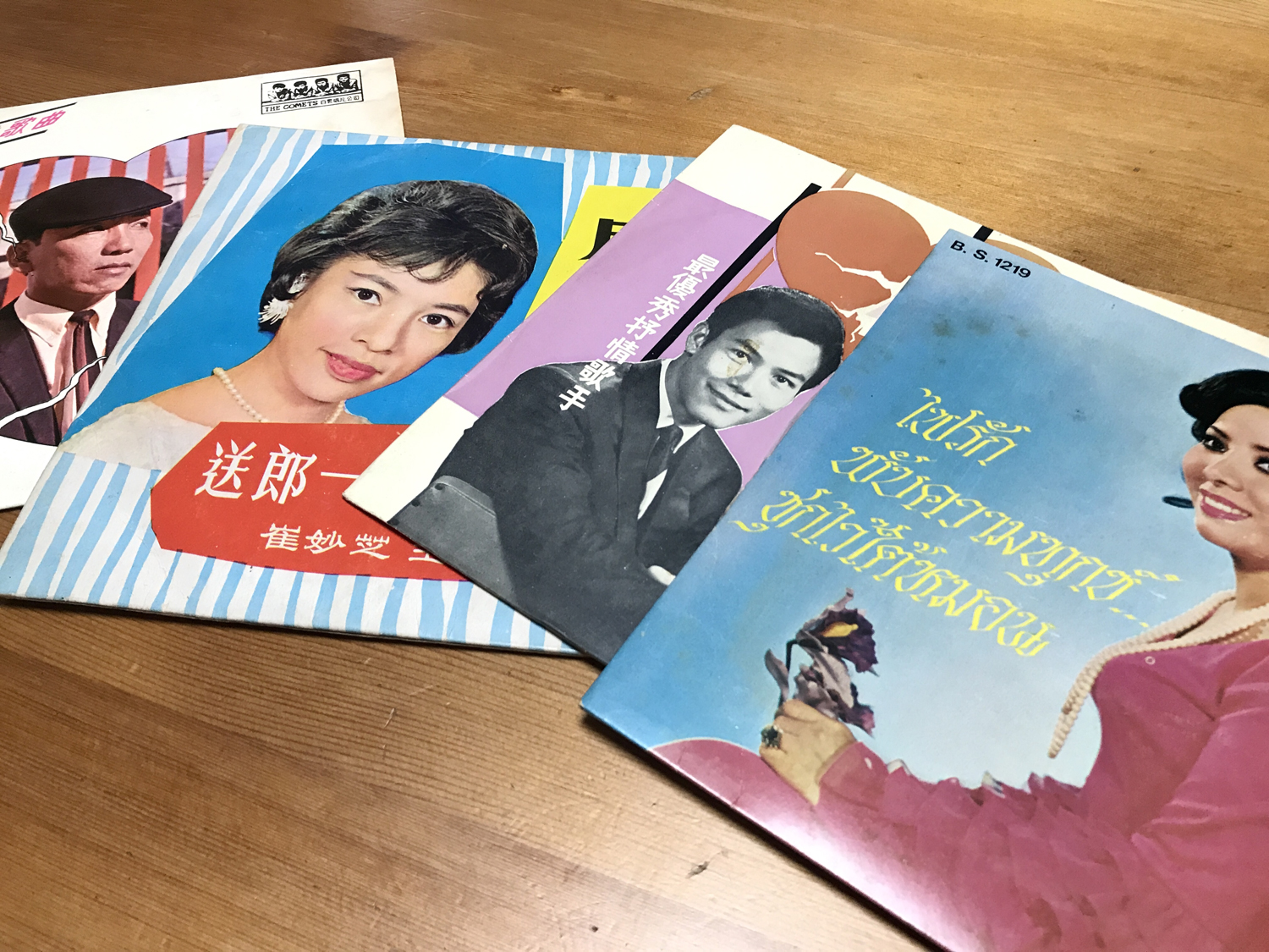 昼ごはんの後は中古レコードの物色だ。ディスクユニオン御茶ノ水駅前店。都内にいくつも店舗があるが、この店は均一コーナーの充実ぶりが素晴らしい。100~300円までの廉価盤コーナーだが、最近は設置しない店舗も多いのだ。先日は台湾やシンガポールの歌謡曲のシングル盤がいくつも出ており、これがけっこうな掘り出しものだった。ジャケットの異国情緒も良いが、内容もどれも素晴らしい。