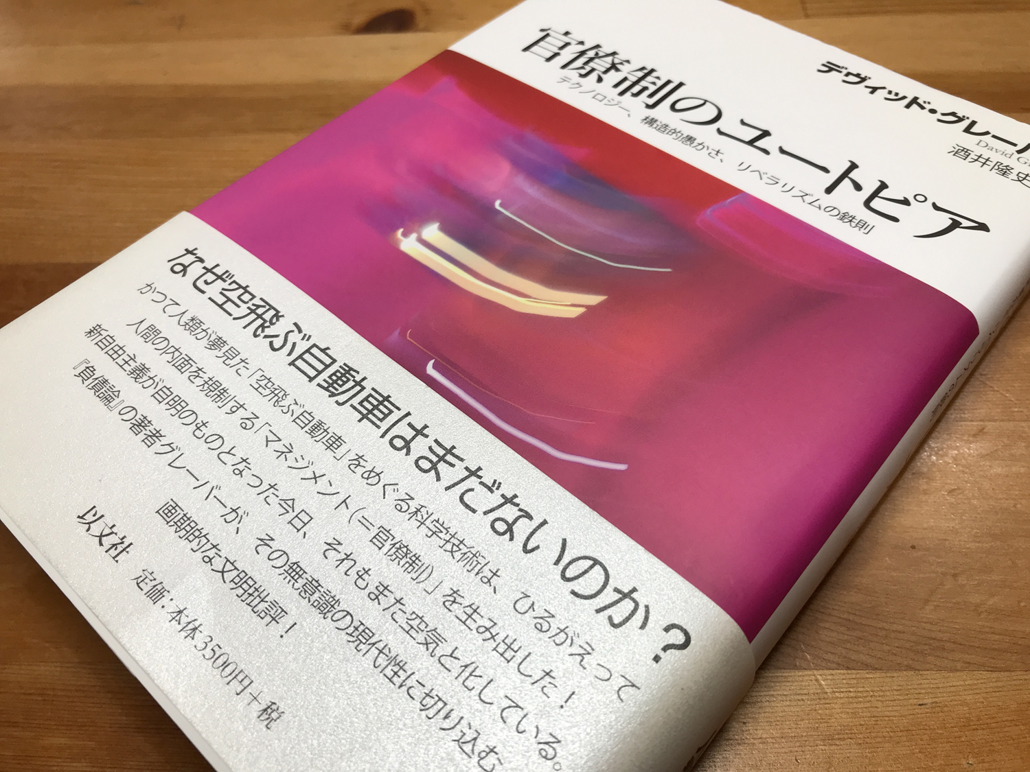 実はグレーバーは本書に先立って『官僚制のユートピア』(2017, 以文社)という著作を上梓している。この『官僚制~』で彼は、いまや社会は全面的に官僚制化しており、官僚制はわたしたちにとって空気のようなものになった