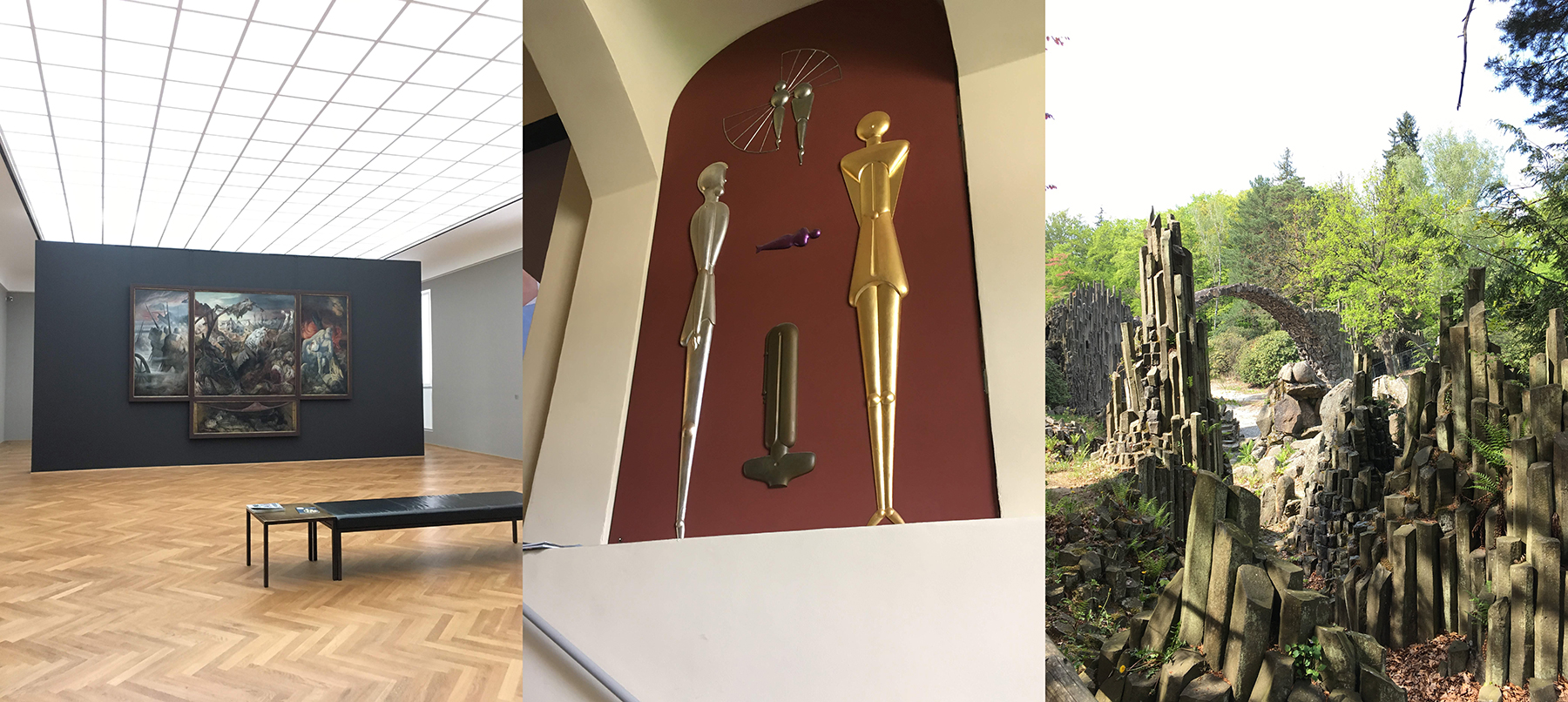 バウハウス誕生の地ヴァイマールにある芸術アカデミーの校舎。退廃芸術に認定されて塗りつぶされたことで有名な壁画の階段ではなく、その階段手前にあるオスカー作のレリーフ。
