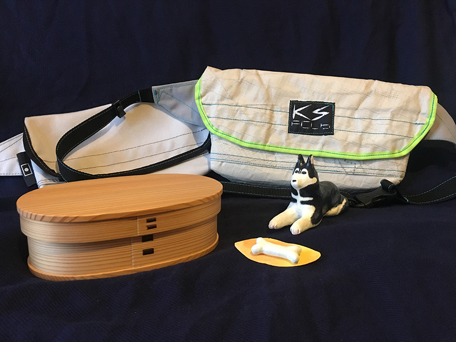 その1は、神奈川・鎌倉にアトリエ兼ショップ「HEADQUARTERS」を構える「KSFCLB from Kteam」のショルダー・バッグ。写真家でもある阿部隆太さんのハンドメイドのバッグは、ヨットの端材(セイルクロス)を活かし、軽くて丈夫。今年8月に神奈川・藤沢 江の島 Curry Diner OPPA-LAで開催された、ミヤジさん&きのしーさん企画のイベント「Hold on me!」(千紗子と純太、ayUtokiO、テンテンコ、エマーソン北村がライヴ、strawberrysex、speedy lee genesisがDJで出演 | 敬称略)にも出店していて、イベントのフライヤーを手がけた近藤さくらさんとコラボレートしたポーチやバッグも販売されていました(ちなみに近藤さんデザインのイベントTシャツはCORNER PRINTING製)。