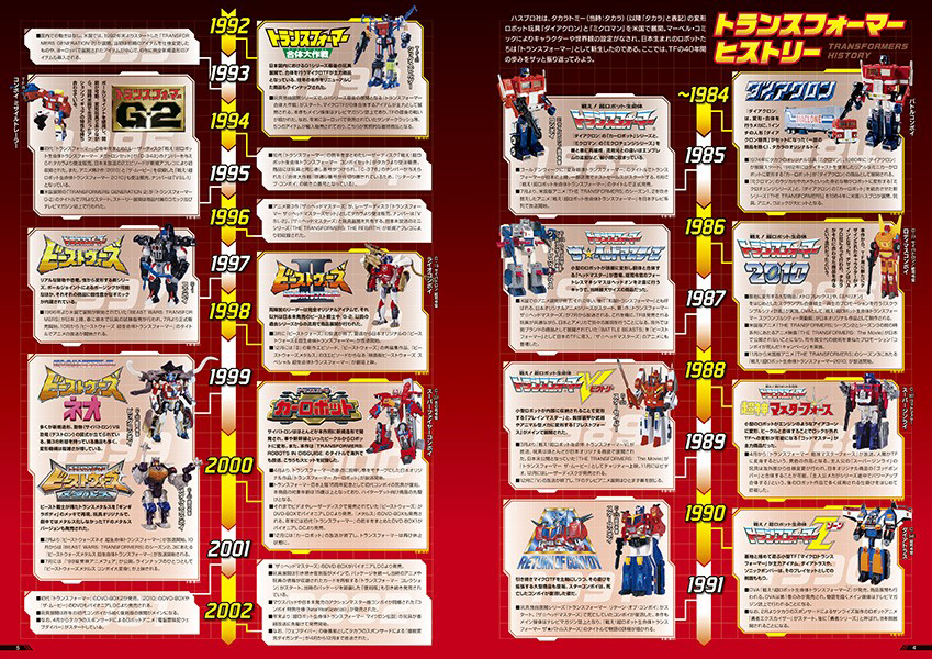 同書には、40年の「トランスフォーマー」史をアニメ・シリーズ、映画シリーズを含めて時系列で振り返る年表や、『トランスフォーマー / ビースト覚醒』のルーツとなっている「ビーストウォーズ」シリーズの分析、同シリーズの脚本 / シリーズ構成を務めた武上純希へのインタビューをはじめ、初代アニメ・シリーズ『戦え!超ロボット生命体トランスフォーマー』(Generation 1)の終了後に『テレビマガジン』誌にて展開された連載品の解説、『MPG トレインボット』と『ダイアクロン トレインボット』の比較記事などを掲載。玩具カタログ、各作品 / キャラクター紹介、資料や未公開の図版も充実した内容となっています。