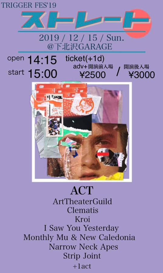 音楽イベントを企画・運営する学生団体「TRIGGER FES 実行委員会」が、「TRIGGER FES’19 “ストレート”」を2019年12月15日(日)に東京・下北沢 GARAGEにて開催。