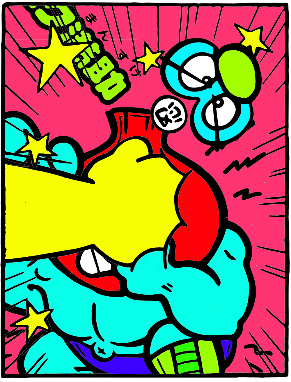 シルクスクリーンの多色刷りを用いるアーティスト・うんこりんが、初個展「フルボッコパンチ展」を東京・阿佐ヶ谷 VOIDにて2月4日(木)から14日(日)まで開催。