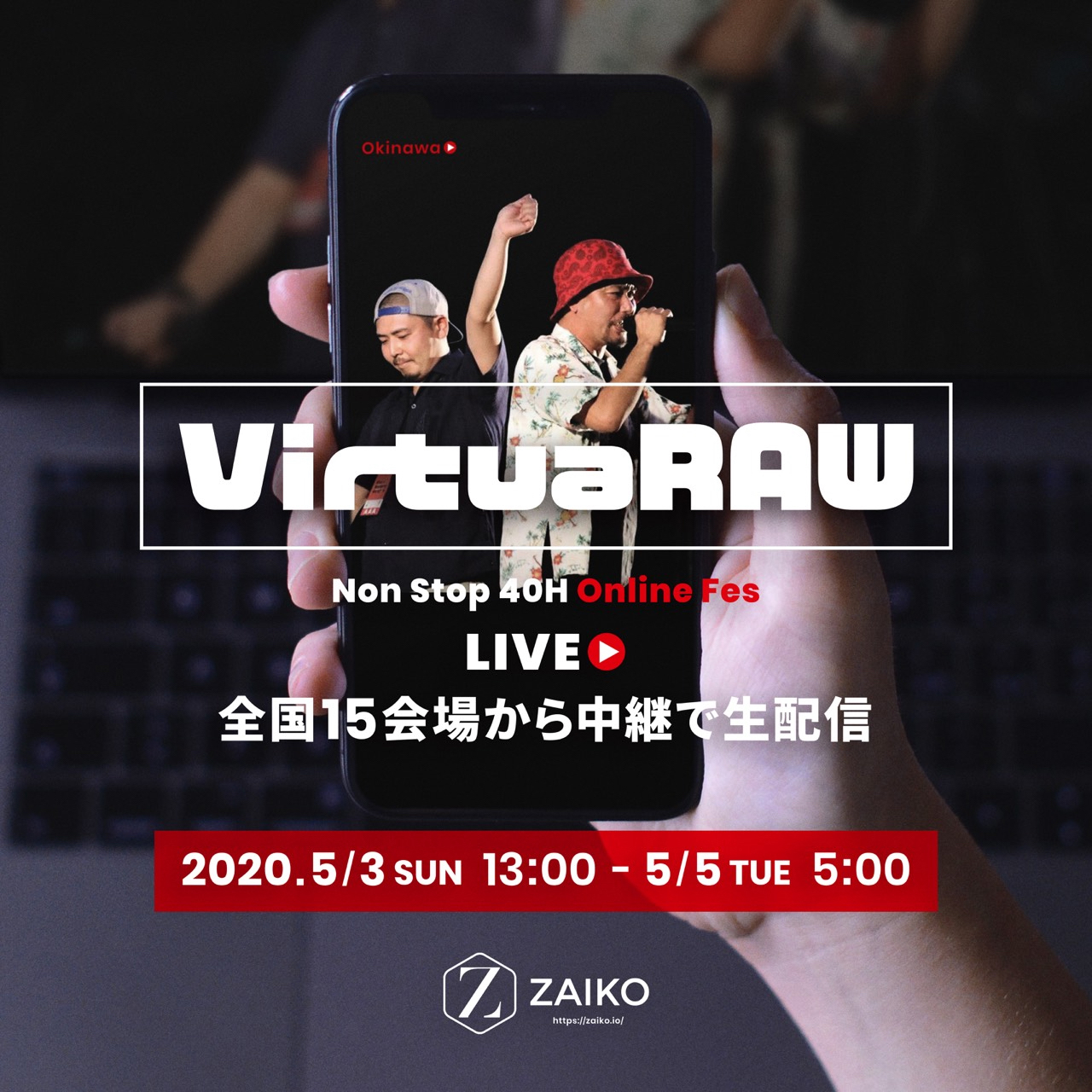 北海道から沖縄・石垣まで、日本全国のライヴハウス、クラブが一堂に会してライヴ配信を実施する大規模オンライン・フェスティヴァル「VirtuaRAW」が、5月3日(日)13:00から5日(日)5:00の3日間、計40時間に亘って開催されます。