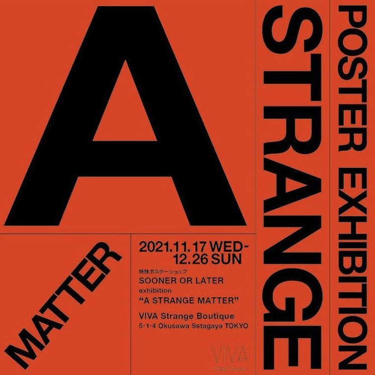 コンテンポラリー・アートやアーキテクチャ / インテリア、映画、音楽などの希少な輸入ポスターを販売する“特殊ポスターショップ”「SOONER OR LATER」が、エキシビション「A STRANGE MATTER」を11月17日(水)から12月26日(日)にかけて東京・奥沢のセレクトショップ「VIVA Strange Boutique」にて開催。