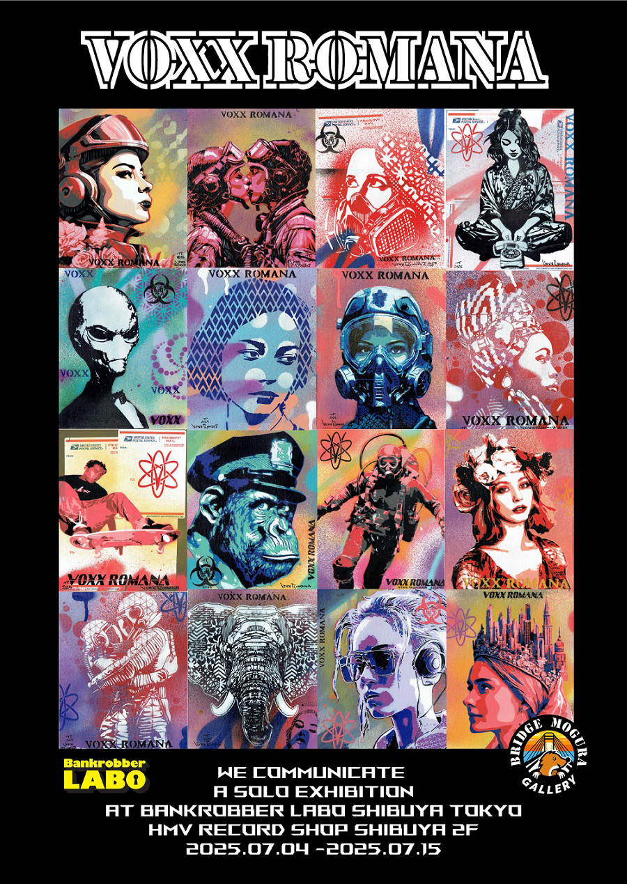 米ポートランドORを拠点に活動し、ステンシル作品を多く手掛けている美術家・Voxx Romanaが、ソロ・エキシビション「We Communicate」を東京・渋谷 Bankrobber LABO(HMV record shop 渋谷)にて7月15日(火)まで開催。
