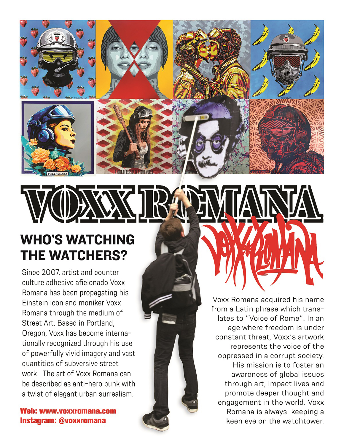 アイコニックな肖像を大胆にモチーフとして用い、社会的なテーマに基づいたストリート・アートで知られるVoxx Romana。東京・恵比寿のギャラリー「Bridge Mogura Gallery」が企画する「We Communicate」には、紙にステンシルで塗装したオリジナル作品30点強を出展。Tシャツやステッカー・パックも販売されています。会期中は代引きでの通信販売も受付。