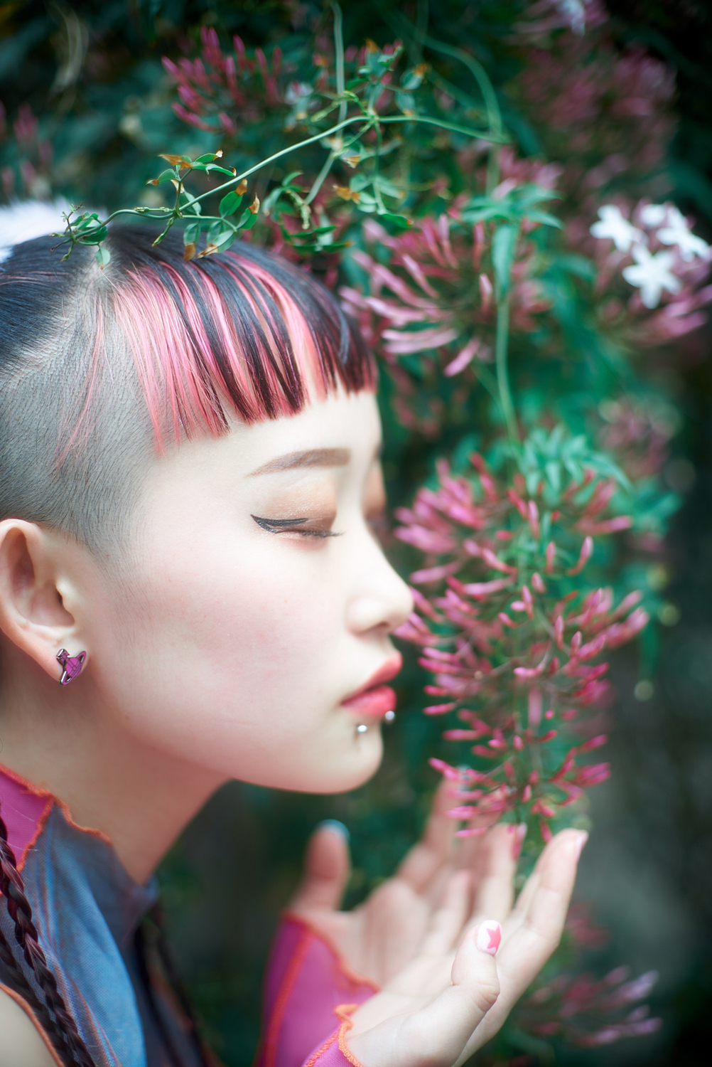「やっぱり学生生活で、制服という決まったものを着ていた環境にいた頃が、自分の中でひとつの苦しかった要素だし、大人の言う“普通”ってその人の“普通”であって、それが正解じゃないのに。でも学生っていう身分なので、私が嫌だと思って反発しても丸め込まれちゃったりすることも、どうしてもあって。変わらなきゃいけないはずだっていうのはすごく思っていたけど、ただ、今のこの現状の日本を変えるとかって、そんな簡単な話じゃないし。私は政治家でもないし。そうなると私にできるのは、SNSで、こんな髪型でこんなピアスしてても人生成り立っている奴がいるんだよ、っていうのを発信すること。こんな見た目でもアリなんだっていうのをわかってもらえたらいいなって思っています。何が良くて何がダメという線引きをせず、全部良いほうに持っていけばいいって私は思っているんです。好き嫌いはあるにせよ、嫌いなものにヘイトを向ける必要はない。自分の好きか嫌いかは置いておいて、全部良いっていうことにしたら自分も自分の周りの人も幸せだと思っているので、それにみんなが気づいてくれたらいいな、って思っています。それがひとつの変わる未来になるのかなって」