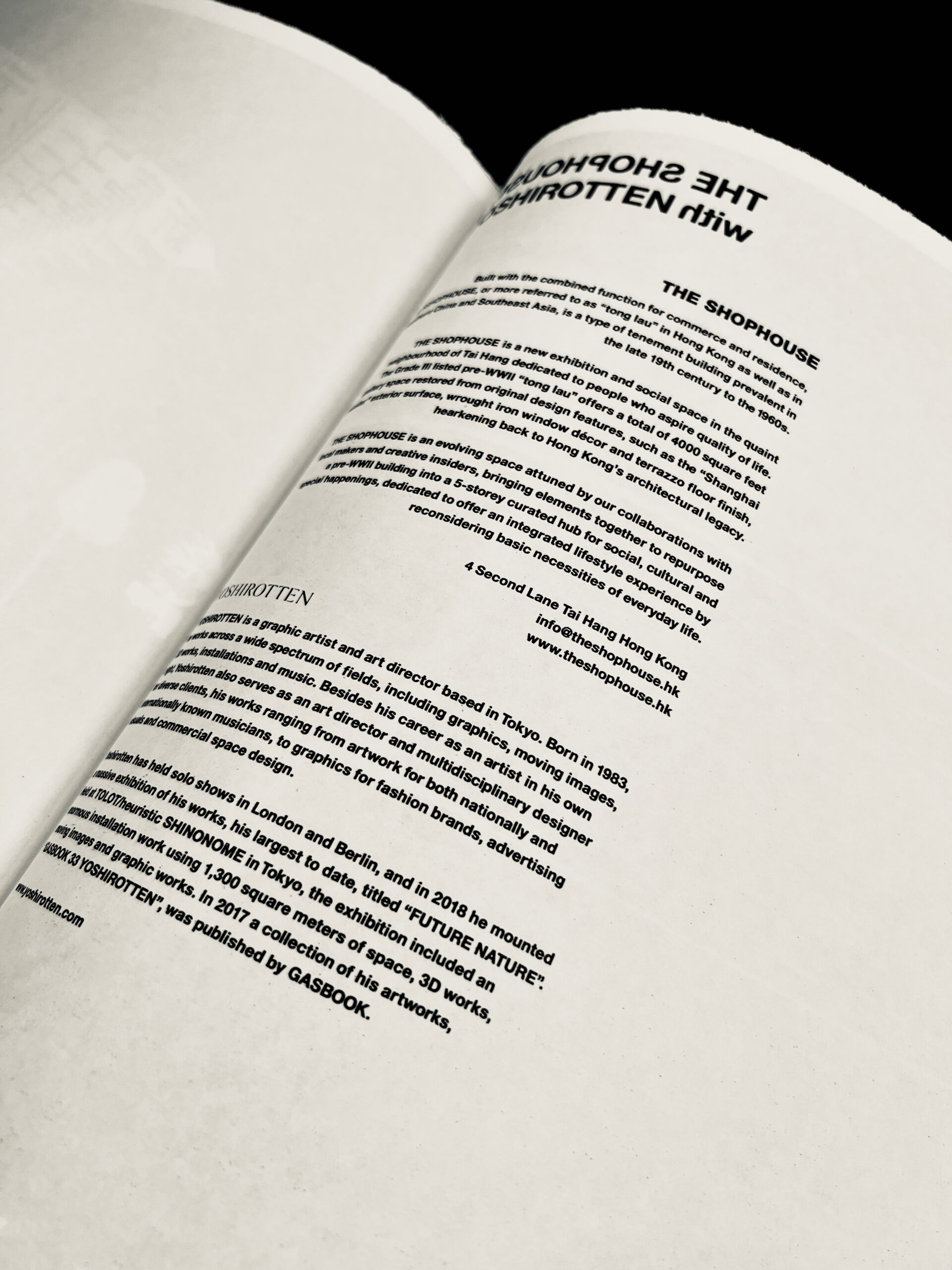 香港のギャラリー「THE SHOPHOUSE」とコラボレートした最新号では、YOSHIROTTENが同地で開催したエキシビション「Cityscape Resolution – Hong Kong」に出展した作品をフィーチャー。単独作品に加え、森山大道『ニュー新宿』シリーズのリワーク作品、映画監督ウォン・カーウァイの元専属写真家 / グラフィック・デザイナーとして知られるWing Shya(ウィン・シャ)との初コラボレーション作品も掲載されています。