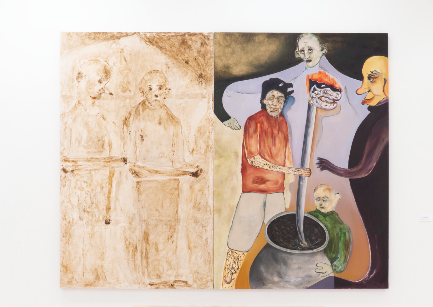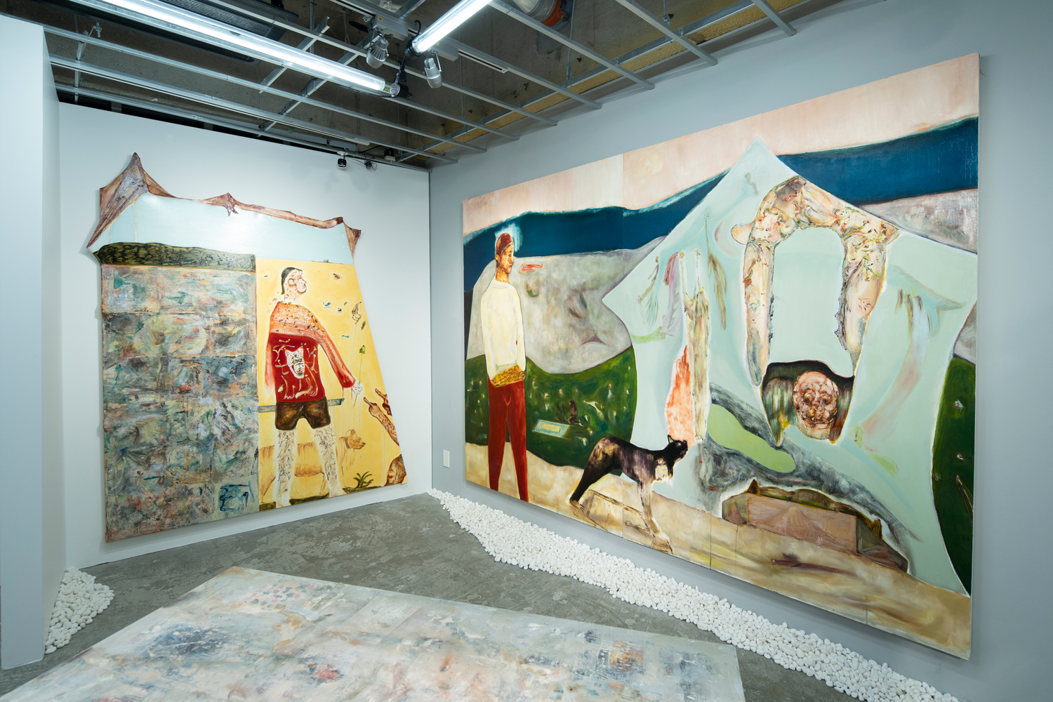 2人で話し合いを重ねていくと、絵画というメディアを主に扱う部分で共通点は有るが、住む場所も普段の制作コンセプトも違う互いをどう纏めるかという事に話の主軸が置かれていき、2人で意見を出し合う中で展示空間を容器と見立てて、その容器の中で共にどの様な場を作れるのかという所に話が飛んで、最終的には「自分達の部屋を作ろう(繕う)」という結論に落ち着いた。