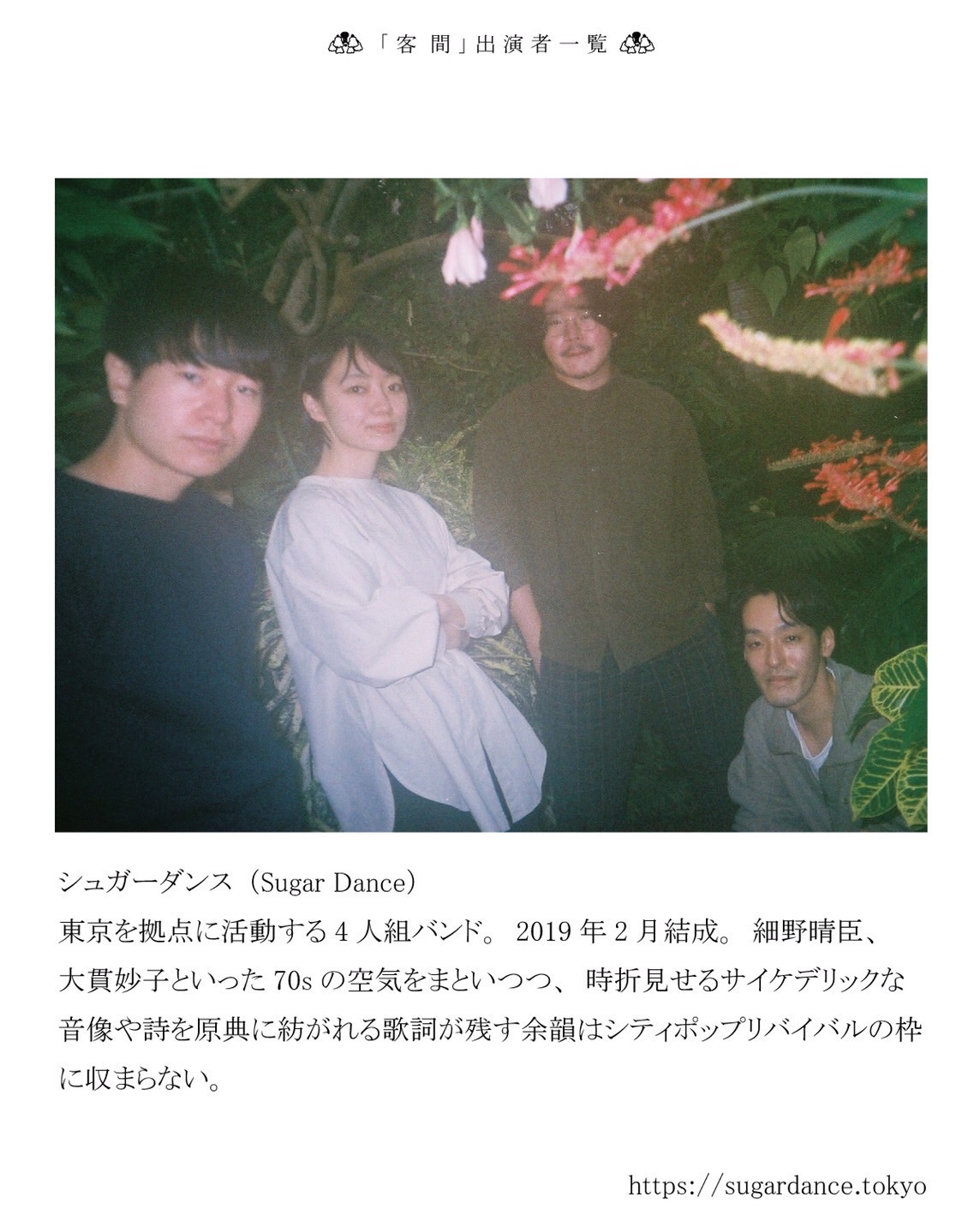 同イベントには、「洋間レコード」オーナー両名による音楽プロジェクト・洋間スタジオをはじめ、平沢なつみと組んだに角すいや折坂悠太(合奏)のピアノ担当として活躍する飯島はるか、10月にシングル『木星金木犀』を発表したシュガーダンスが出演。有富はソロでのピアノの弾き語りも予定しています。予約は試聴室のオフィシャル・サイトにて受付中。