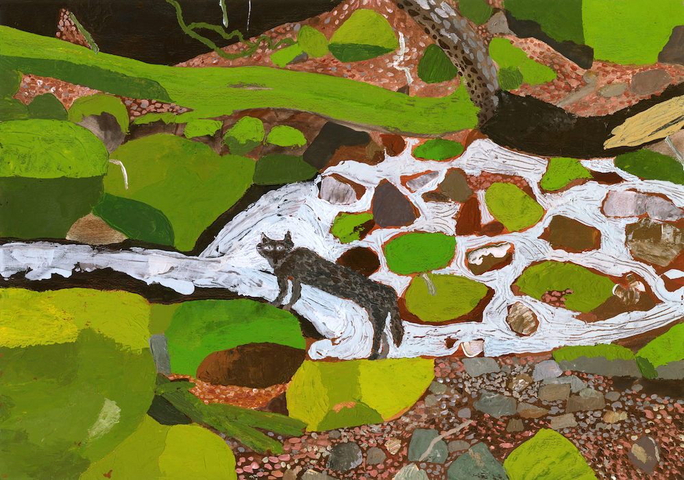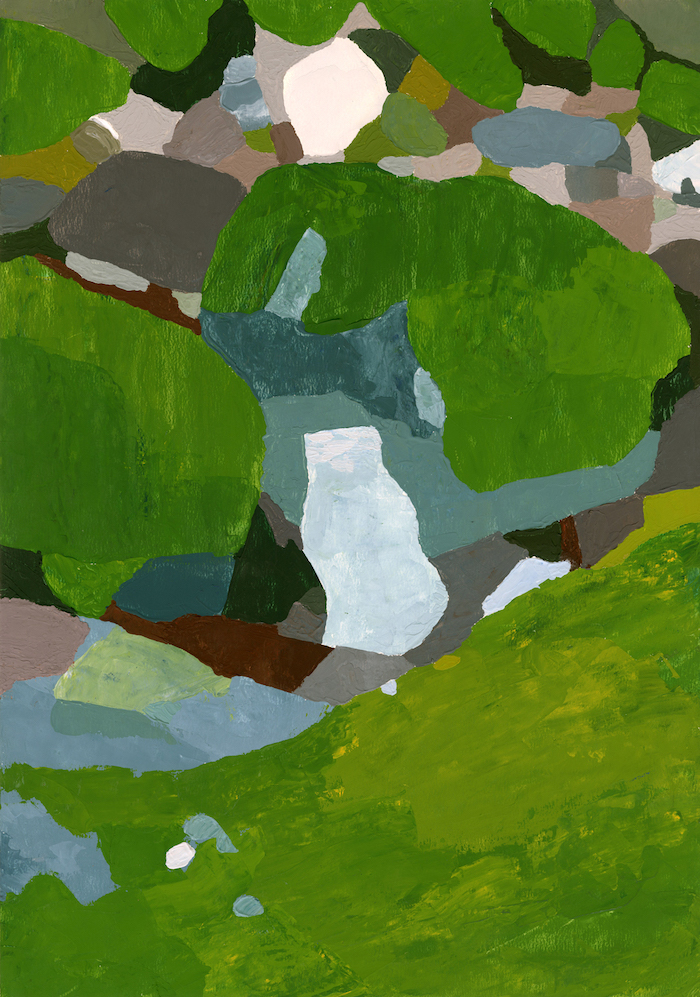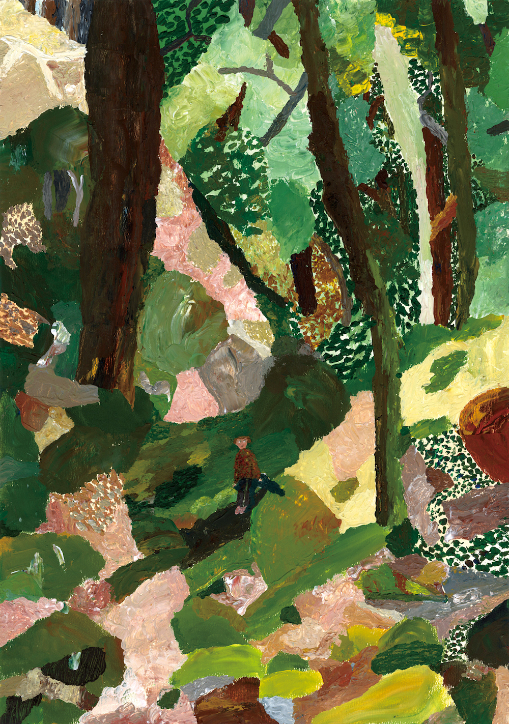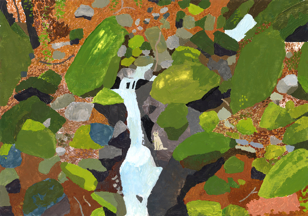 ミューラルアート、書籍の装丁、広告ヴィジュアル、製菓のパッケージ・ヴィジュアルなどのクライアント・ワークも数多く手掛け、2023年に作品集『骨になる』(ELVIS PRESS)を発表して話題となった山口。「いっしょにふるえてる」では、木々、川などの自然を描いた絵画が多数展示されます。