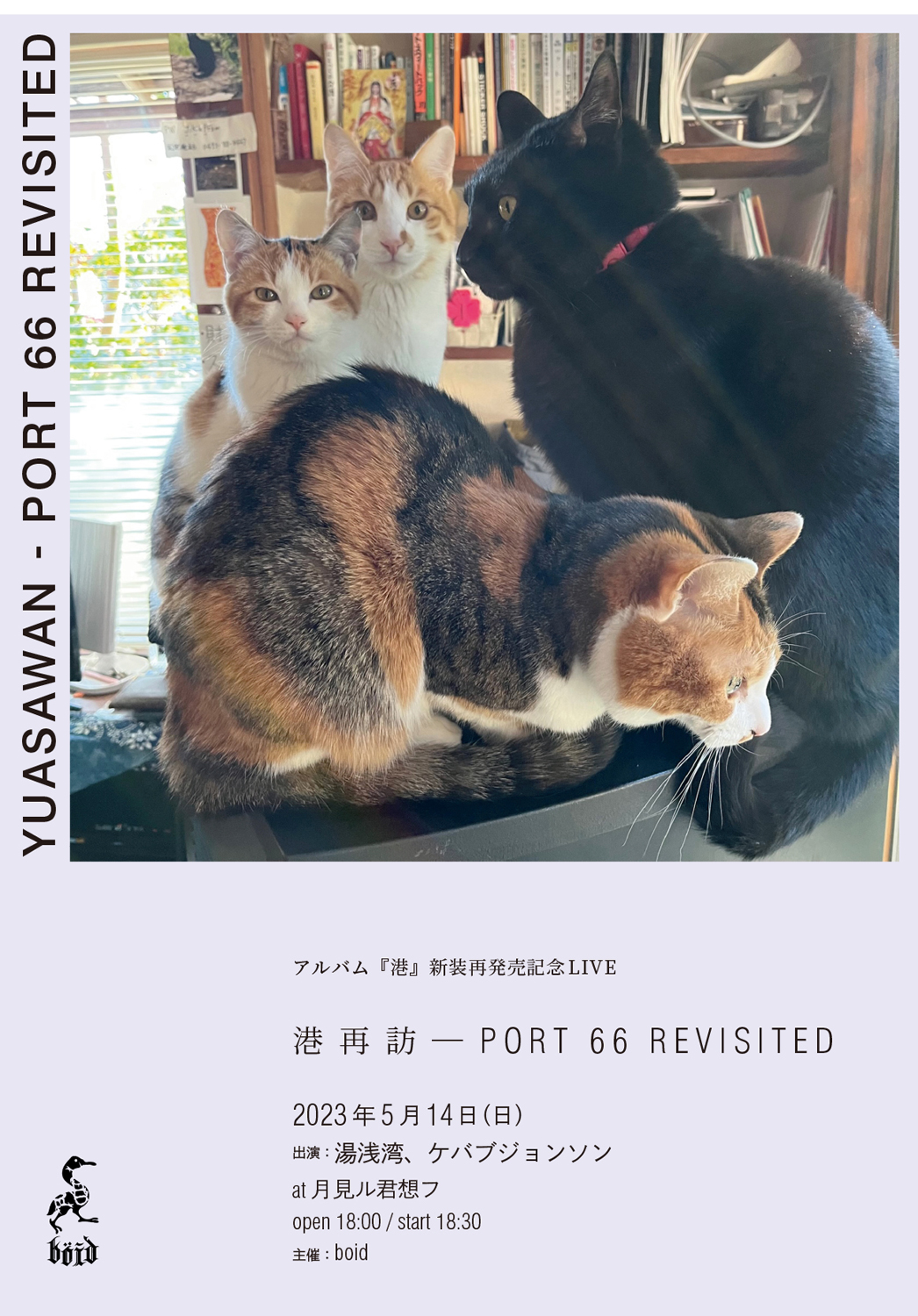 これを記念したライヴ「港再訪 – PORT 66 REVISITED」も発売日に先駆けて5月14日(日)に東京・南青山 月見ル君想フにて開催。当日は、2021年発表の5thアルバム『Souvenir Views』(BOZi RECORD)が好評を博したケバブジョンソンの出演も決定しています。チケットの予約受付は5月13日(土)23:59まで。