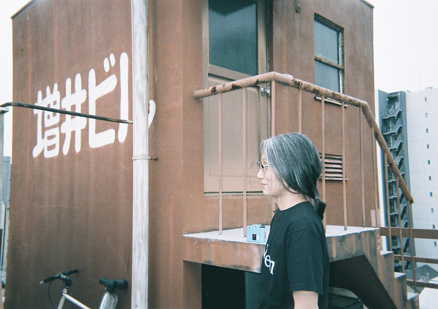 「インテリアの感じ的にっていうのは特にないですね。だけど、場所の感じとしてはあります。アムステルダムに中学の頃の友達が住んでいて、20代終わりのときに1ヶ月くらい行ったんです。彼とノイズ・バンドを組んでいたので、向こうでも演奏させてもらったり。その場所というのが、Radio100という名前の海賊ラジオ局。4~5階建ての建物で。ヨーロッパの建物って、ブロックが並んだりしていて中庭があったりするじゃないですか。そういう建物の一角だったと思うんだけど、最上階まで行って廊下を歩くと、謎の階段みたいなのがあって。狭いんだけど、そこを上がっていくと屋根裏部屋みたいなのがあって、そこが海賊ラジオ局。海賊ラジオっていうくらいだから違法電波なんですけど、FM放送のトランスミッターがあって、8畳くらいの部屋にその日のディスクジョッキーさんと事務机、レコード・プレイヤーとCDプレイヤーがあって、音楽をどんどん流していくわけです。その余白みたいなところにリアルタイムで我々ノイズ・バンドが演奏するっていうのをやりました。その、階段を上がっていくと、ふっと全然違う空間が広がっている、みたいなのがすごく楽しかった。ここもそういう感じになればいいなっていうのがあって。増井ビルの1階から上がってきた人は、上がこうなってるとは思わないじゃないですか。その時点でわりと良いんじゃないかな」