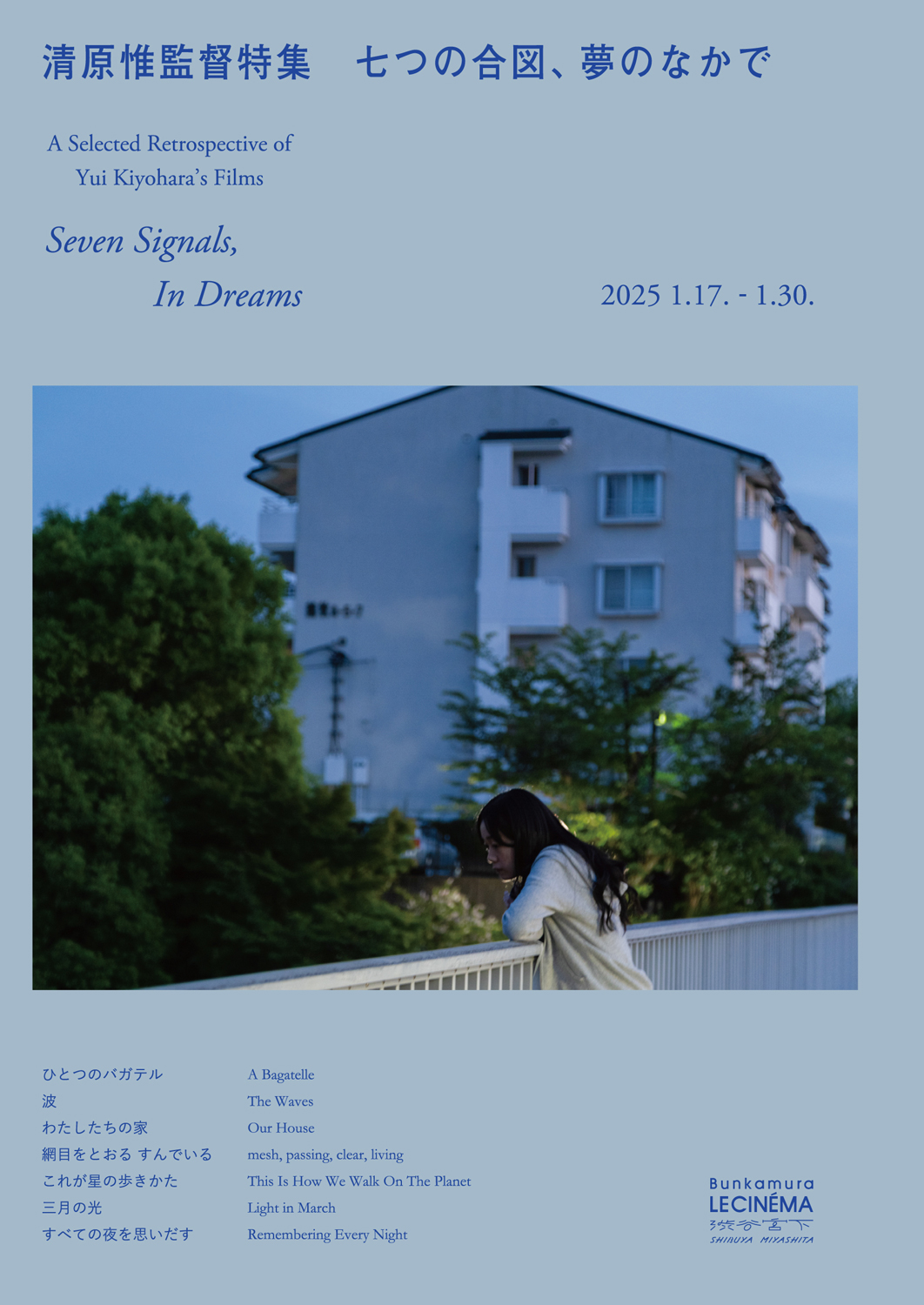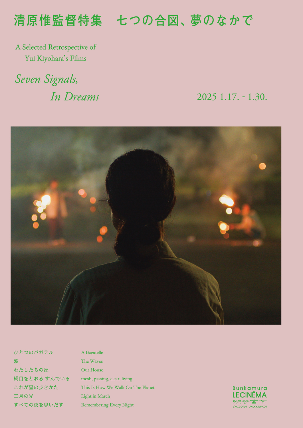 同企画では3作の長編『ひとつのバガテル』(2015)、『わたしたちの家』(2017)、『すべての夜を思いだす』に加え、短編4作『波』(2017)、『網目をとおる すんでいる』(2018)、『これが星の歩きかた』(2020)、『三月の光』(2022)の計7作品を上映。1月21日(火)には小田原のどか(彫刻家 / 評論家と清原監督が登壇するトーク・イベント、1月29日(木)には『すべての夜を思いだす』の劇伴をASUNAと共に手掛けたジョンのサンによるライヴ・パフォーマンスも予定されています。なお1月17日(金)と18(土)に予定されていたトーク・イベントは、清原監督の体調不良により中止。代替日程の調整がアナウンスされています。
