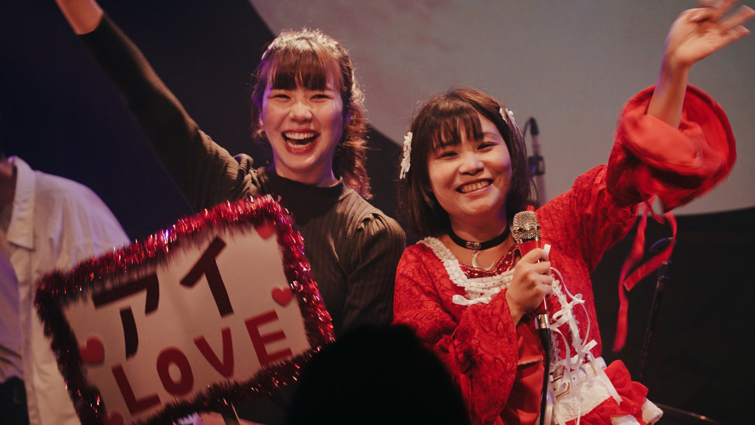 そして本編ラスト・ナンバー「アイスを捧げて」は、2023年の夏の思い出を綴った曲。歌詞が覚えられず、客席から歌詞を掲げてもらったことから定番になっていった曲でもある。「私に全てを捧げて」の言葉通り、それぞれが持ち寄った思い出と共に、タイトルにもなっているアイスを捧げた。そして小日向由衣の親友でもあるプラカードを持った“謎の女”に扮したダンサー(眉村ちあき)の乱入でより一層の盛り上がりを見せ、本編を終えた。