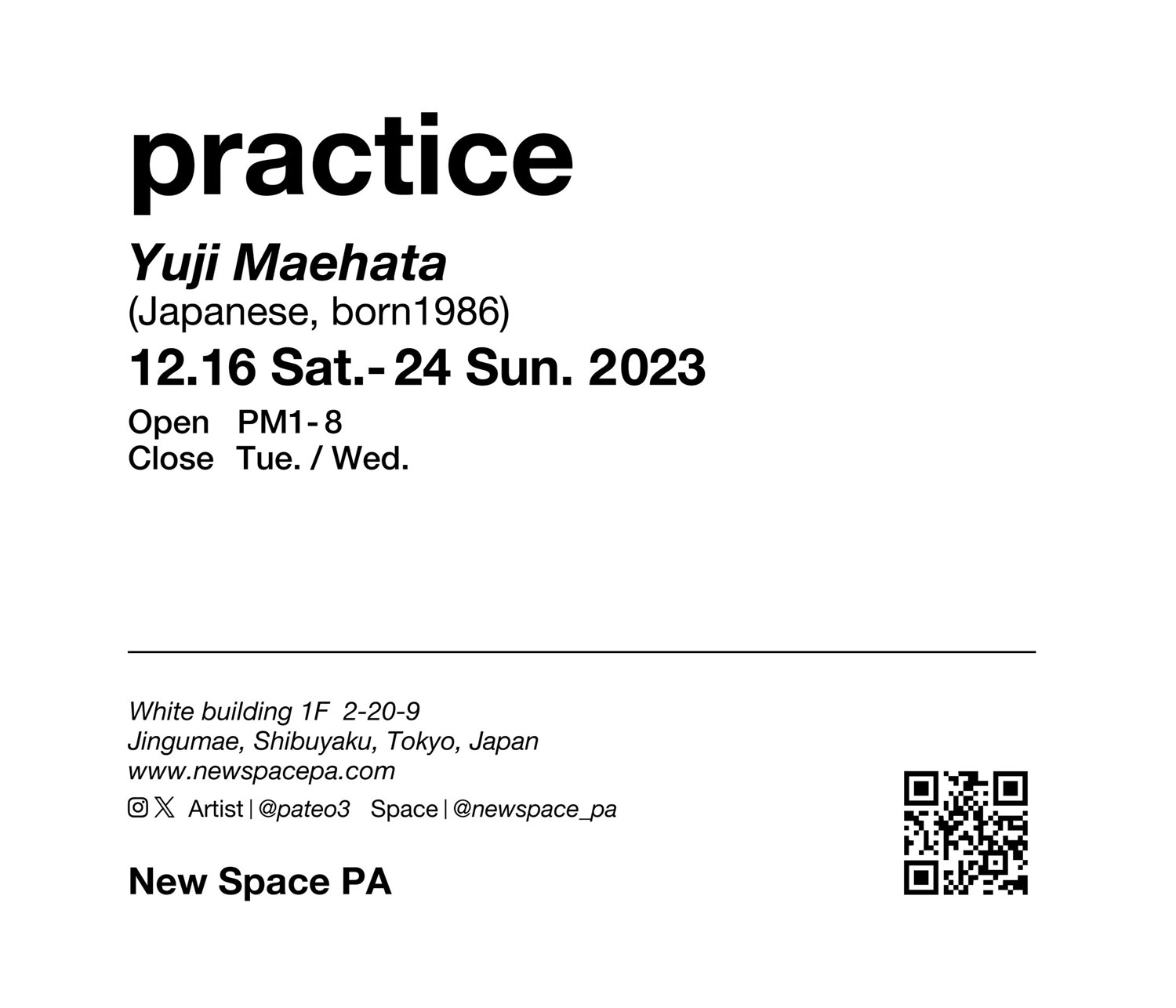 9月に個展「富士の美 II」を愛知・名古屋 gallery Nにて開催した美術家・前畑裕司が、自身が運営に携わる東京・神宮前 ニュースペース パにてソロ・エキシビション「practice」を12月16日(土)から24日(日)まで開催。