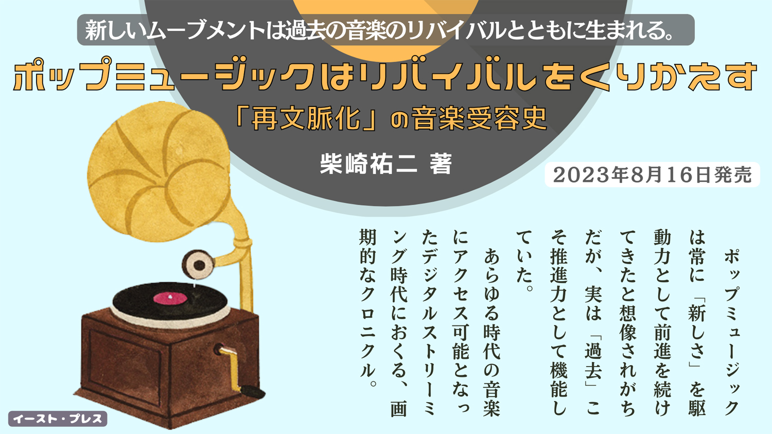 A & Rとしての経歴を持ち、『ミュージック・ゴーズ・オン』(単著 | 2021, ミュージック・マガジン)、『シティポップとは何か』(編著 | 2022、河出書房新社)などの話題書で知られる音楽ディレクター / 評論家・柴崎祐二が、単著『ポップミュージックはリバイバルをくりかえす 「再文脈化」の音楽受容史』(イースト・プレス | 2,600円 + 税)を上梓。8月16日(水)より販売が開始されています。