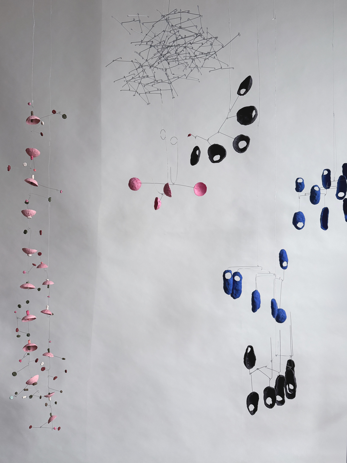 ニューヨーク州立ファッション工科大学(Fashion Institute of Technology)を卒業後、インテリア・デザイナーとして照明や家具を制作し、2018年からはデザイナー / アーティストとして独立した西川。昨年4月から5月にかけて山梨・北杜 GASBON METABOLISMにて開催した「Mossy Mossy」の続編となる「Moshi-Moshi Karuta」には、紙 / パルプ、スティール・ワイヤーによるモビール作品を出展。会期初日の2日(金)には、作家在廊のオープニング・パーティが実施されます。