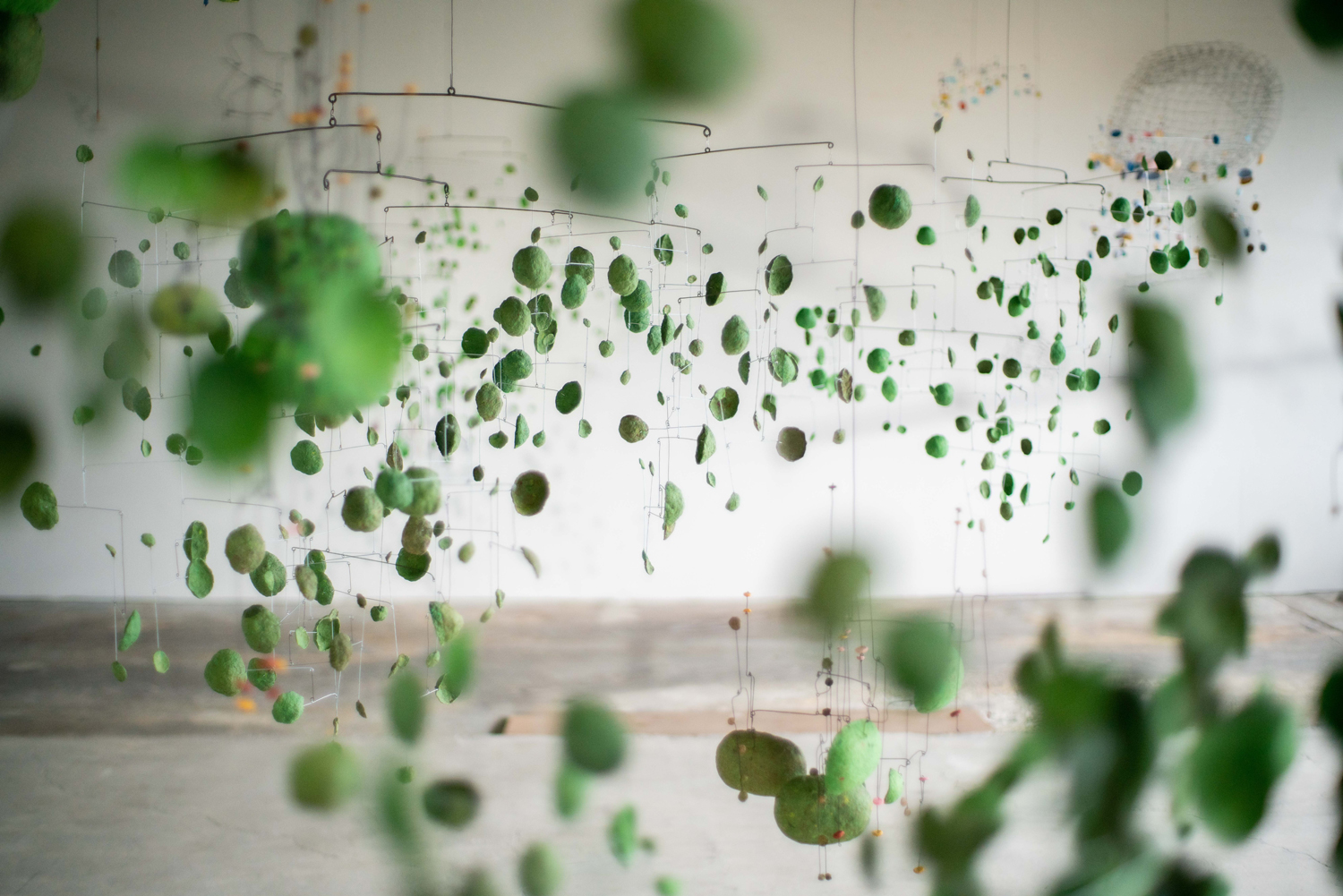 言葉遊びによって生成された一連の作品を通じて、環境、ストーリー、エコシステムを作成できないか——その模索から「モシモシカルタ(Moshi-Moshi Karuta)」の制作を始めました。日本語の音節を頭文字としてことわざを当てはめたいろはかるたにヒントを得て、「モシモシカルタ」では、音で結び付けられたタイトルの付いた作品を展示します。この展覧会は、昨年の春に山梨県北杜市にあるガスボンメタボリズムで展示したインスタレーション「モシモシ (Mossy Mossy)」から発展したものです。「モシモシ」では、苔の回復力、感受性、不思議さを表現した緑の環境を制作しました。この春は、その中からいくつかの作品を都市空間に移植し、雲の柱の様に重ねて、そこから新しい作品が生まれ出るという思いで造形します。 新シリーズの最初の作品は、日本の方への私の呼びかけ、「モシモシ」の最後の音に続く「シ」で始まり、同じシステムに従って、タイトルで結合しながら連続する作品を作成しました。目に見えないつながりで結びついたこれらの物体と、見る者とがどのようなナレーションを生みだすのか、観察しています。