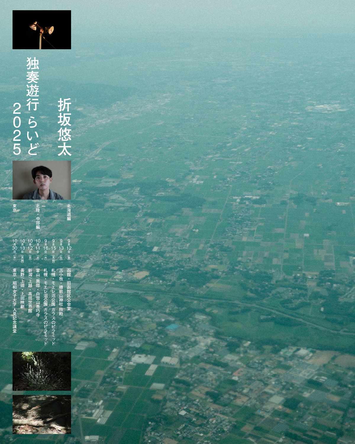 今年は3月にシングル『沖の方へ』、5月にEP『Straße』を発表している折坂悠太が、弾き語りツアー「折坂悠太 独奏遊行 らいど 2025」を9月から10月にかけて開催。開始に先駆け、折坂が撮影、鈴木 聖がデザインを担当したツアー・ヴィジュアルが公開されています。